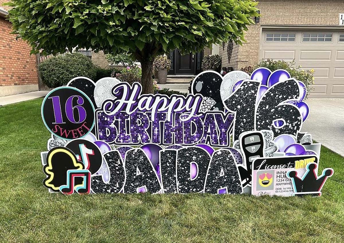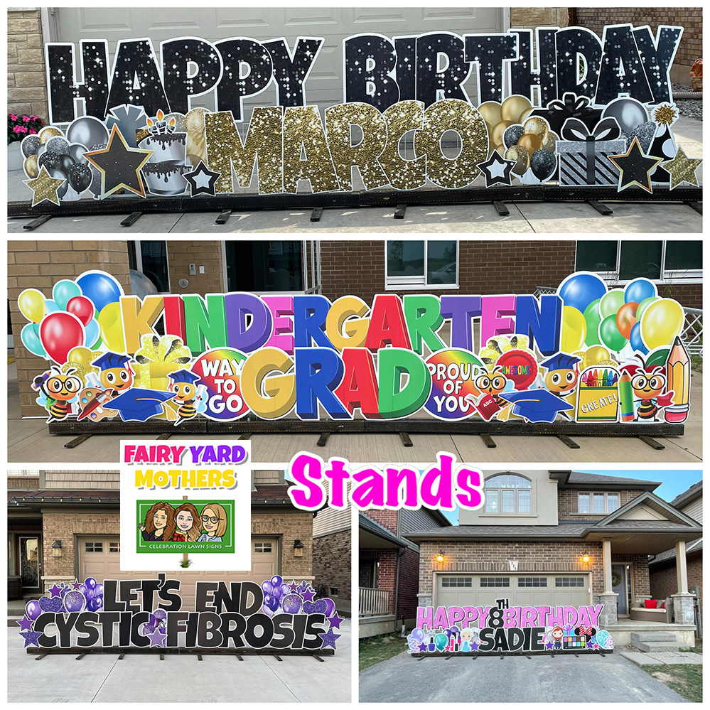 Happy Birthday, Anniversary, Retirement, Graduation, Congratulations, New Arrivals, and Special Occassion lawn signs.